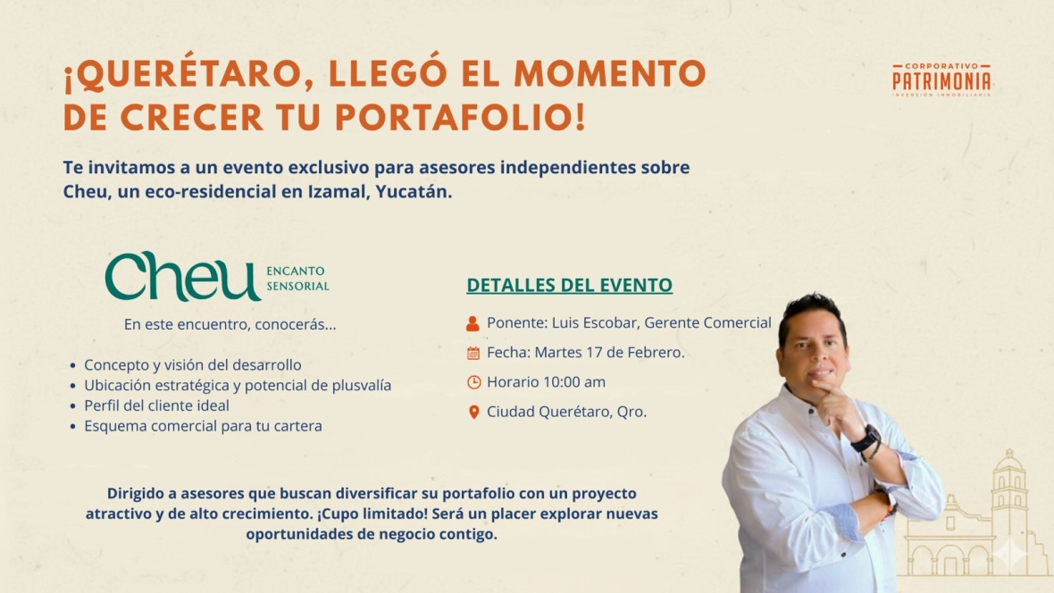 En un mercado tan competitivo, la diversificación es la clave del éxito. Corporativo Patrimonia te invita a un encuentro diseñado específicamente para asesores independientes que buscan productos inmobiliarios de alta plusvalía y conceptos disruptivos para su cartera de clientes.