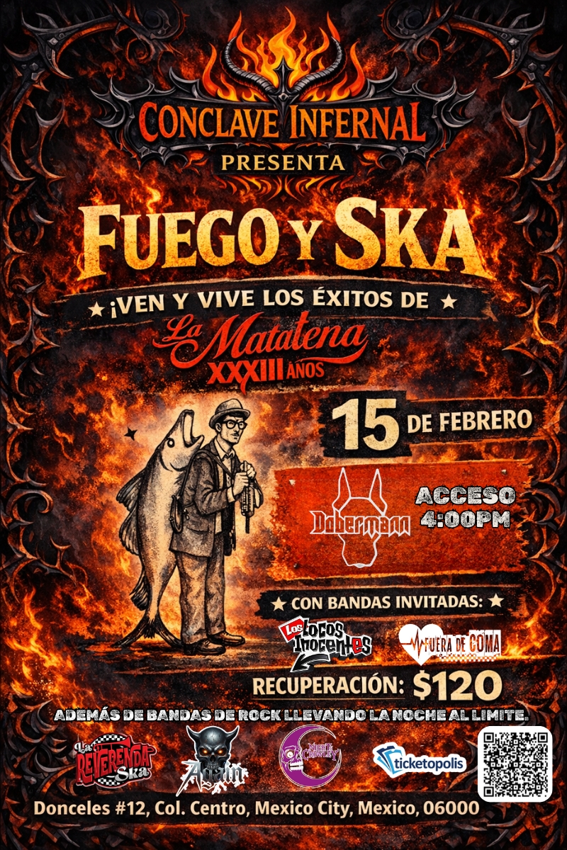 Sumérgete en una noche de ritmo y energía con FUEGO Y SKA, un evento que prende la fiesta con los clásicos del ska y bandas de rock en vivo desde los 80s y 90s.