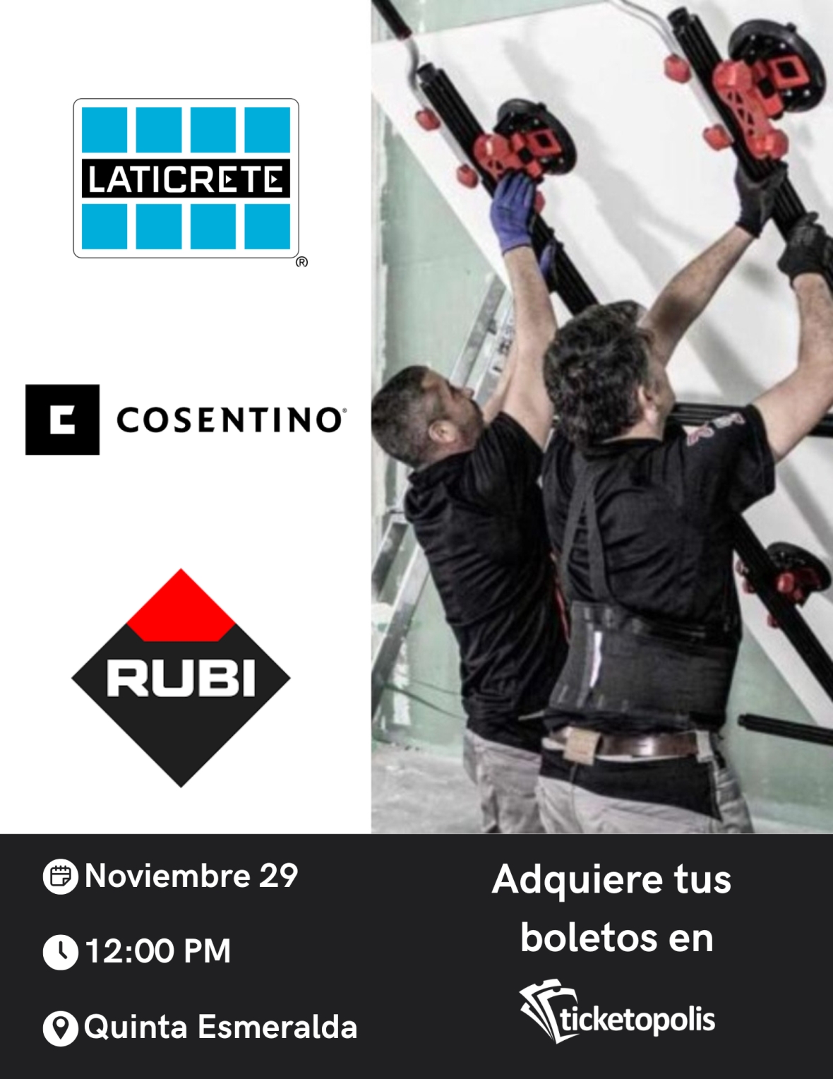 🎤 Con el respaldo de expertos de: LATICRETE, COSENTINO y RUBI