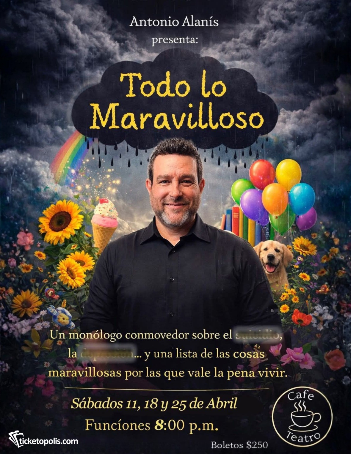 Sinopsis:“Todo lo Maravilloso ”, es una interesante experiencia de teatro inmersivo. La historia se centra en un individuo que enumera una lista con todo lo maravilloso que hay en el mundo, aquello por lo que vale la pena vivir. Una obra interactiva que aborda temas como la salud mental, la depresión y el suicidio, involucrando activamente al público de una forma profundamente personal y emotiva.