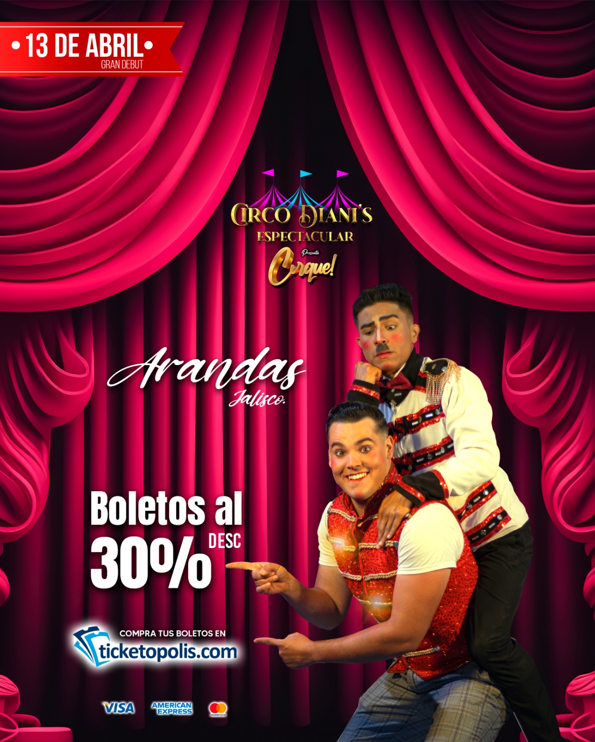 COMPRA TUS BOLETOS AL 30% DE DESCUENTO EN: https://www.ticketopolis.com/circodianis/