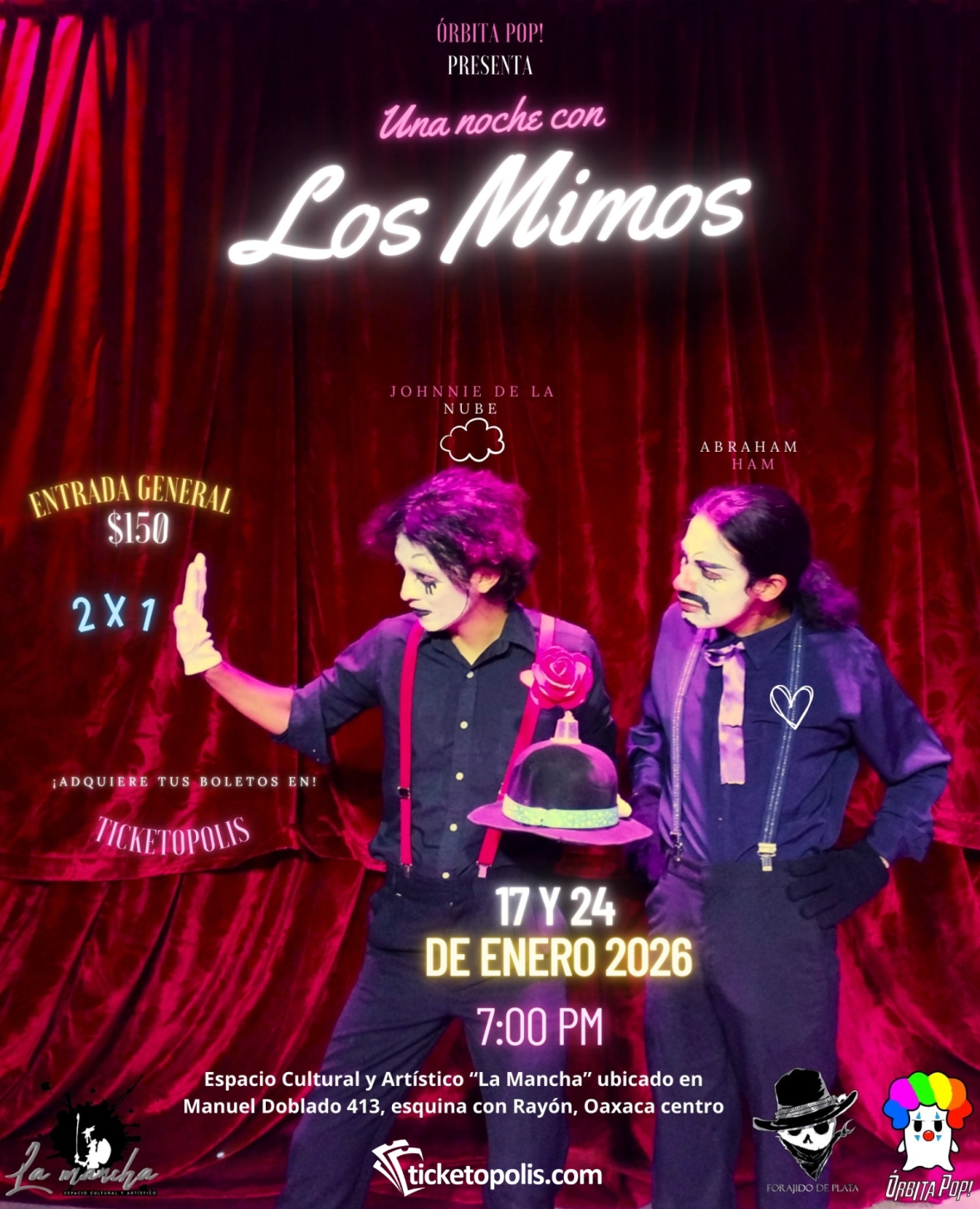 ¿Te has imaginado cómo sería una cena romántica con los Mimos? Esta silenciosa dupla saldrá de fiesta para tratar de encontrar el amor y en su camino harán de todo para enamorar al público.