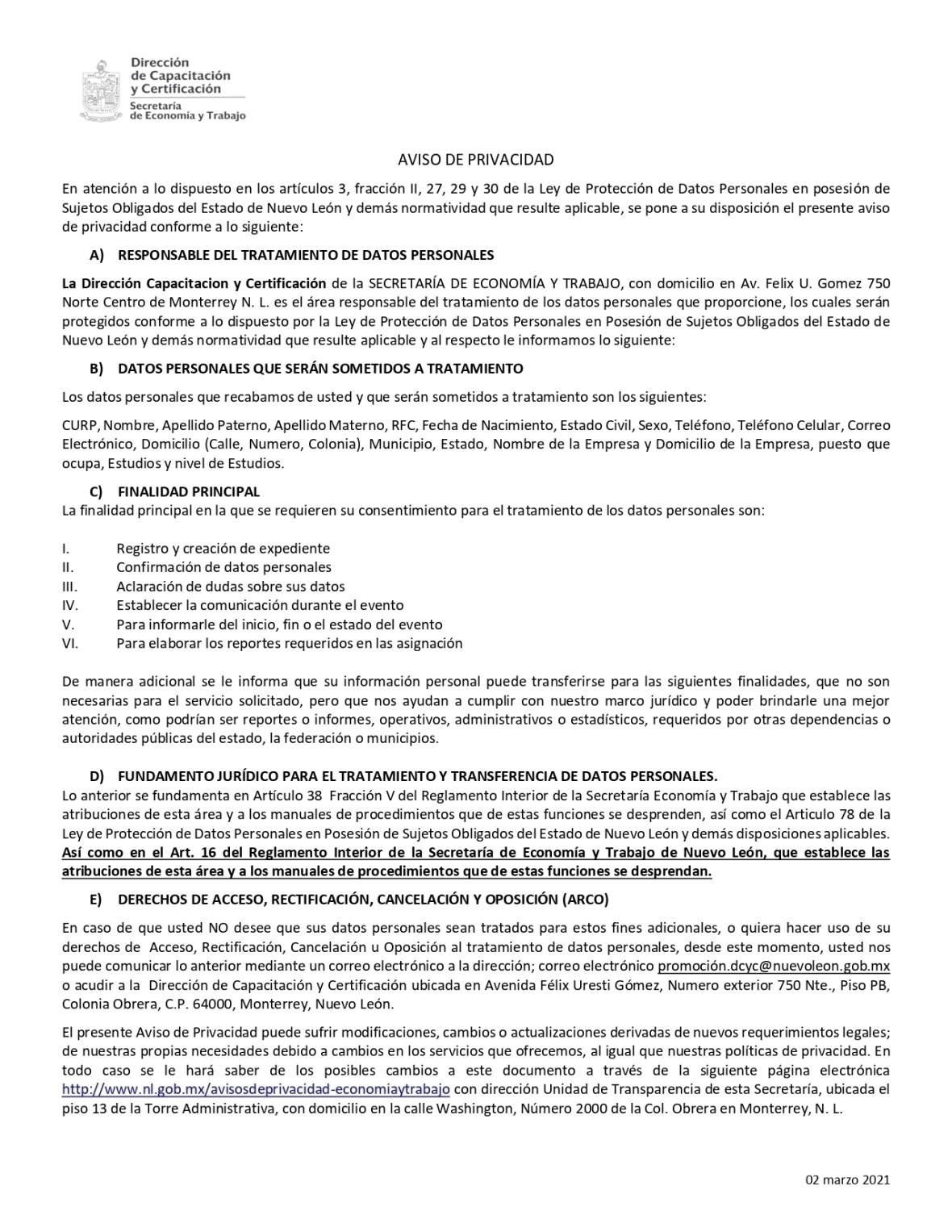Nota: Favor de consultar el apartado de términos para cumplir con los requerimientos del curso.