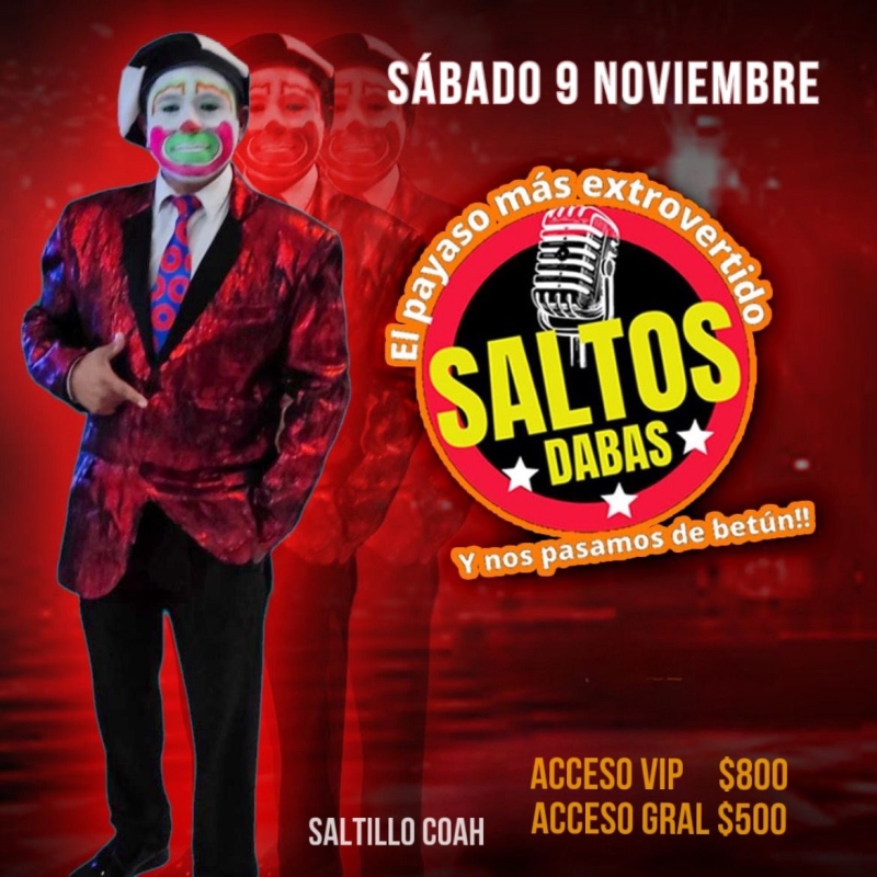 Saltos Dabas con el Show Temu Lagunero Shows Super Especial de Comedia El payaso sensacional! Sabado 9 de Noviembre Explanada Saltillo Coahuila