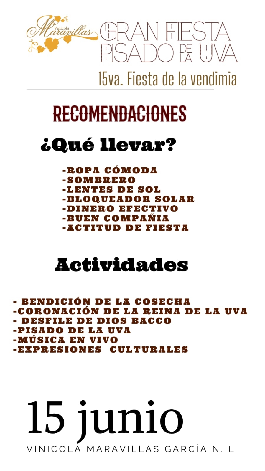 Sigue las indicaciones del personal: El equipo de Vinícola Maravillas estará ahí para asegurar que todos disfruten del evento de manera segura y organizada.
